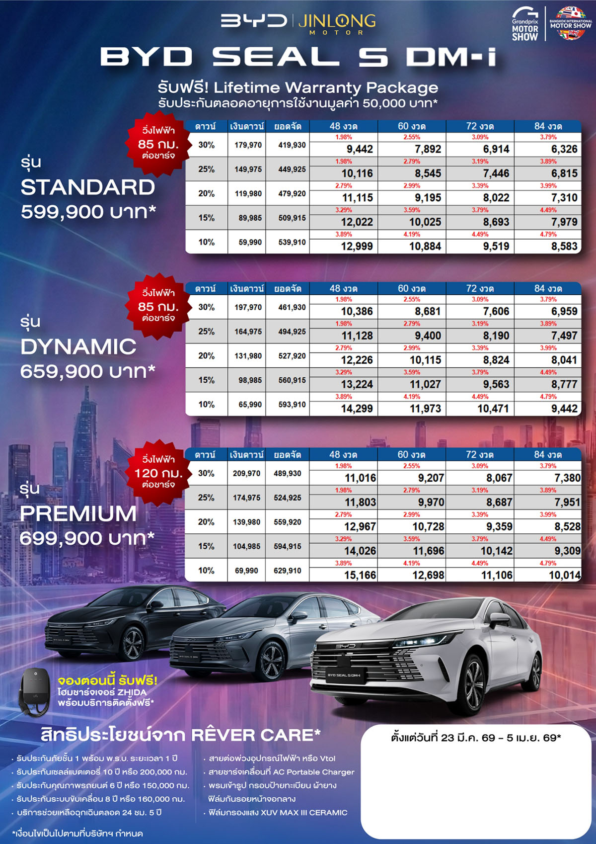 ราคาและตารางผ่อน BYD SEAL 6 ตั้งแต่วันที่ 23 มี.ค. 69 – 5 เม.ย. 69*