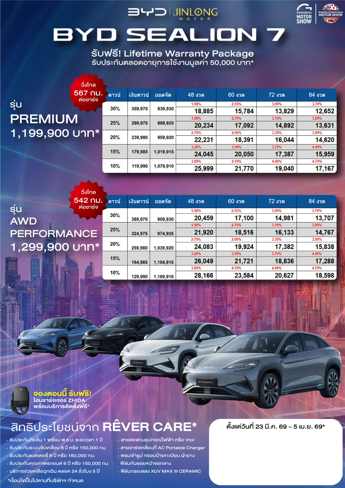 ราคาและตารางผ่อน BYD SEALION 7 ตั้งแต่ 23 มี.ค. 69 – 5 เม.ย. 69*