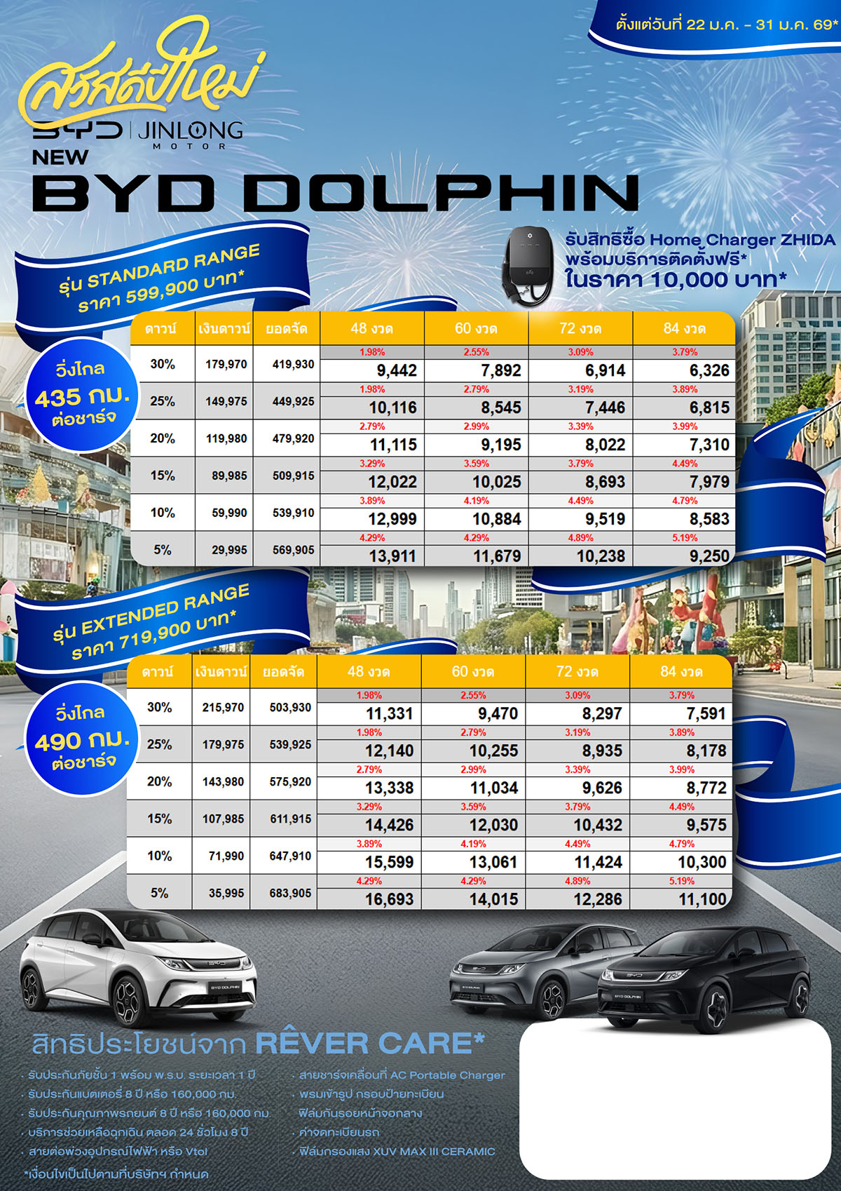 ราคาและตารางผ่อน BYD SEAL11/01/202611/01/2026ราคาและตารางผ่อน BYD SEAL ตั้งแต่วันนี้ - 31 มค. 69อ่านต่อ