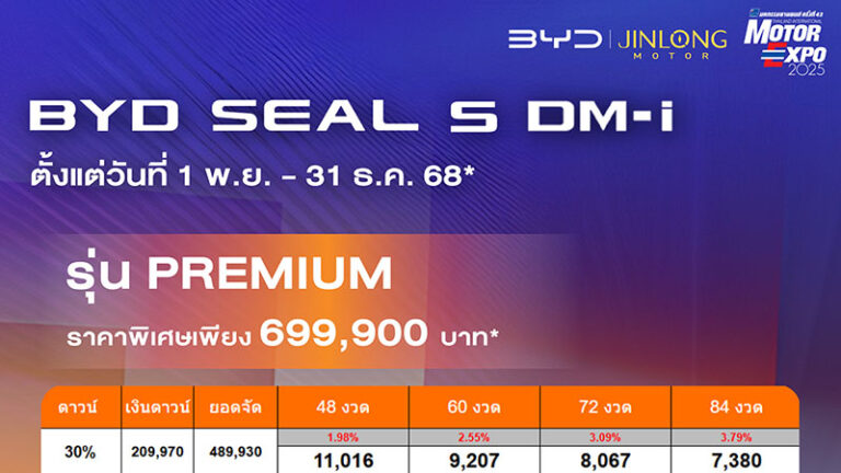 ราคาและตารางผ่อน BYD SEAL 5 DM-i ตั้งแต่วันที่ 1 พย. - 31 ธค. 68