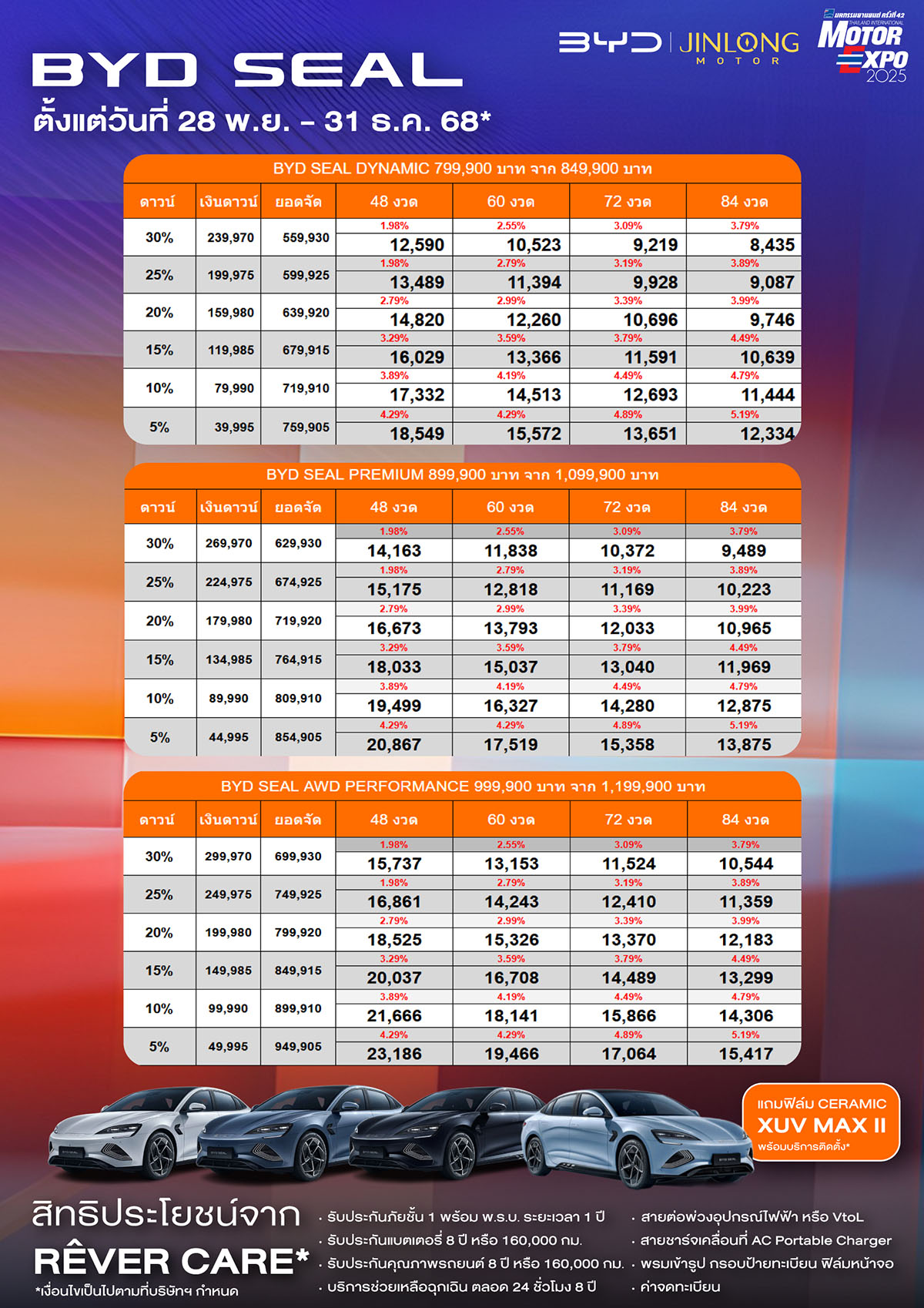 ราคาและตารางผ่อน BYD SEALION 7 ตั้งแต่วันที่ 28 พย. - 31 ธค. 68