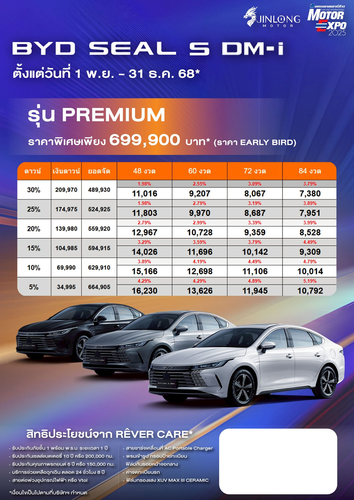 ราคาและตารางผ่อน BYD SEAL 5 DM-i รุ่น PREMIUM
