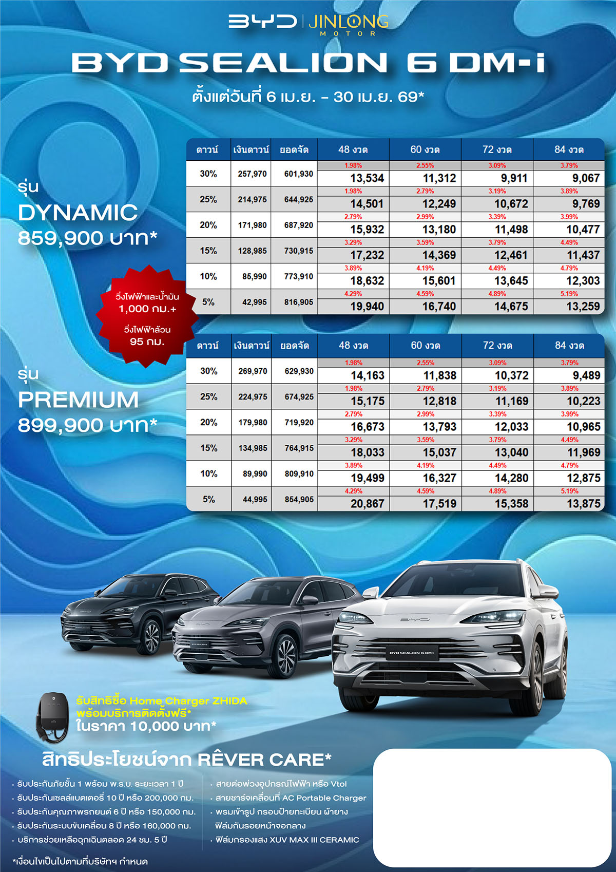 ราคาและตารางผ่อน BYD SEALION 6 DM-i ตั้งแต่วันที่ 6 เม.ย. 69 – 30 เม.ย. 69*