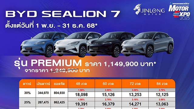 ราคาและตารางผ่อน BYD SEALION 7 ตั้งแต่วันที่ 1 พย. - 31 ธค. 68 บีวายดี จินหลง สาขาราชพฤกษ์