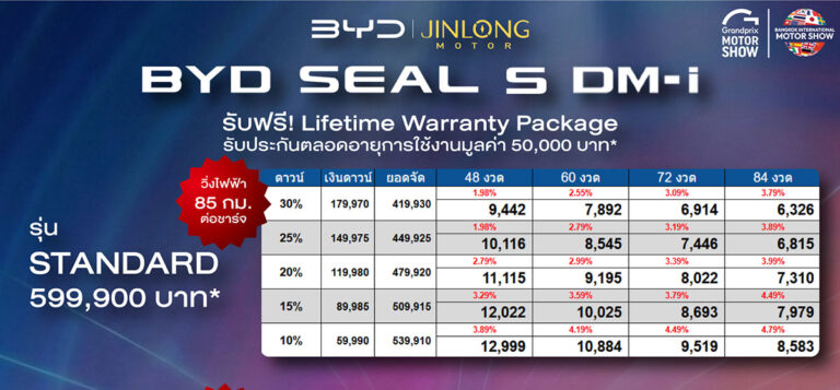 ราคาและตารางผ่อน BYD SEALION 7 ตั้งแต่ 1 มี.ค. 69 – 5 เม.ย. 69*