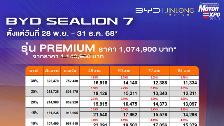 ราคาและตารางผ่อน BYD SEALION 7 ตั้งแต่วันที่ 28 พย. - 31 ธค. 68