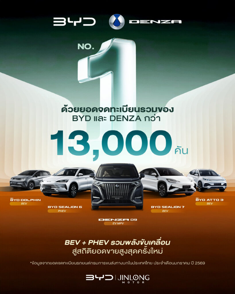 BYD และ DENZA ขึ้นแท่น NO.1 ด้วยยอดจดทะเบียนรวมกว่า 13,000 คัน 🚗⚡