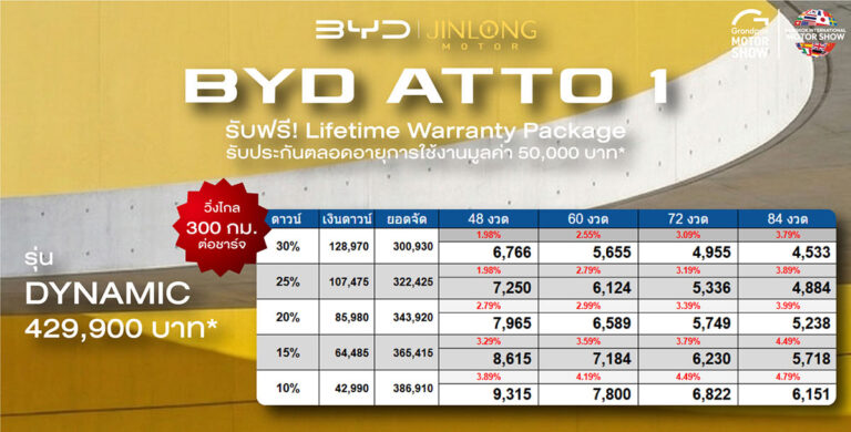 ราคาและตารางผ่อน BYD ATTO 125/03/202625/03/2026ราคาและตารางผ่อน BYD ATTO 1 ตั้งแต่วันที่ 23 มี.ค. 69 – 5 เม.ย. 69*อ่านต่อ
