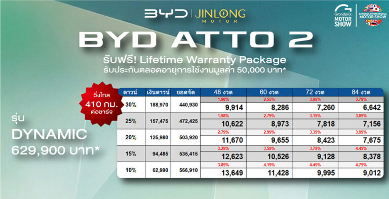 ราคาและตารางผ่อน BYD ATTO 225/03/202625/03/2026ราคาและตารางผ่อน BYD ATTO 2 ตั้งแต่วันที่ 23 มี.ค. 69 – 5 เม.ย. 69*อ่านต่อ